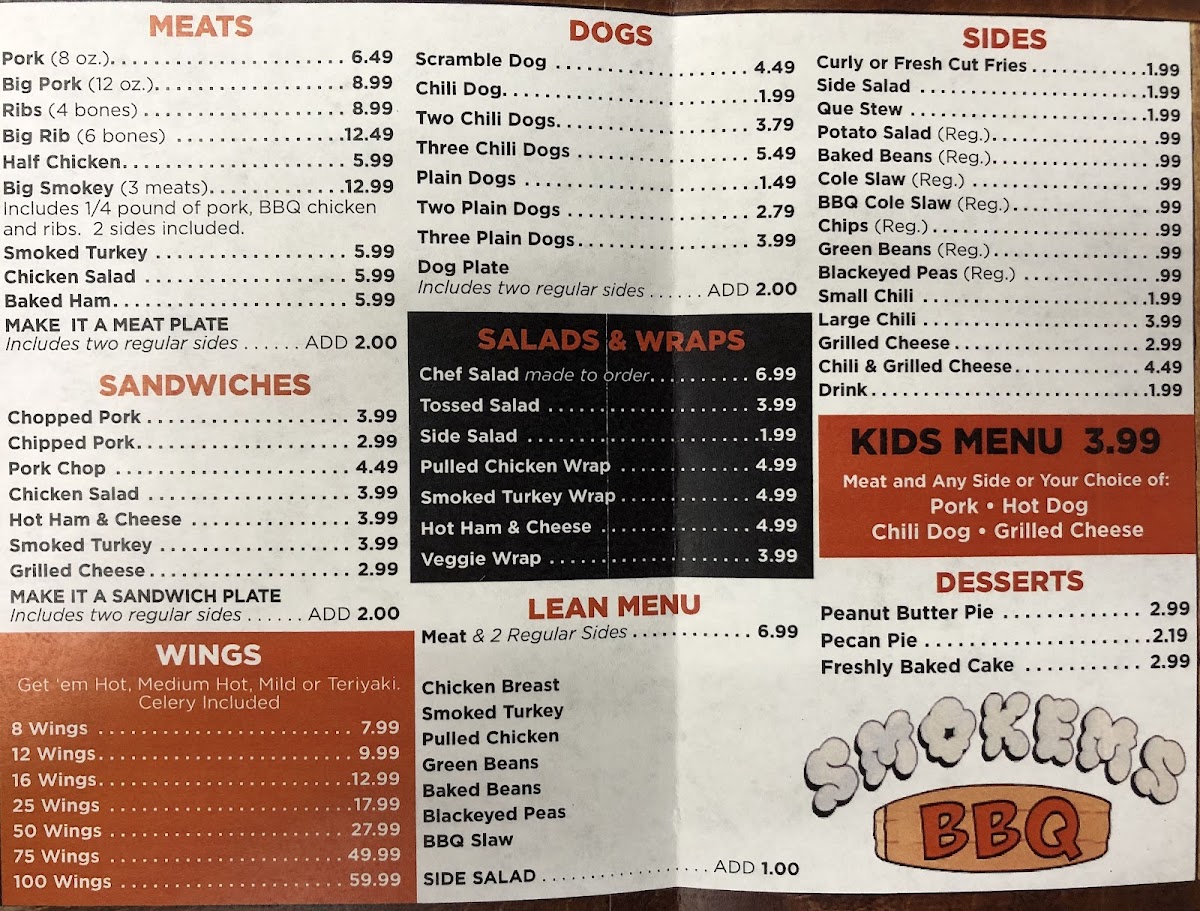 Includes 1/4 pound of pork, BBQ chicken and ribs. 2 sides included.